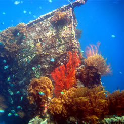 Just a few metres off the beach at Eka Purnama lies a Japanese wreck which is ideal for snorkeling. Equipment is for rent on the beach.